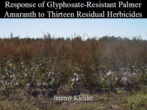 Response of Glyphosate-Resistant Palmer Amaranth to Thirteen Residual Herbicides<BR>Jeremy Kichler<BR>