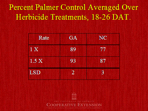 Percent Palmer Control Averaged Over Herbicide Treatments, 18-26 DAT.<BR>