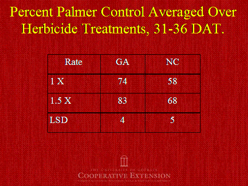 Percent Palmer Control Averaged Over Herbicide Treatments, 31-36 DAT.<BR>