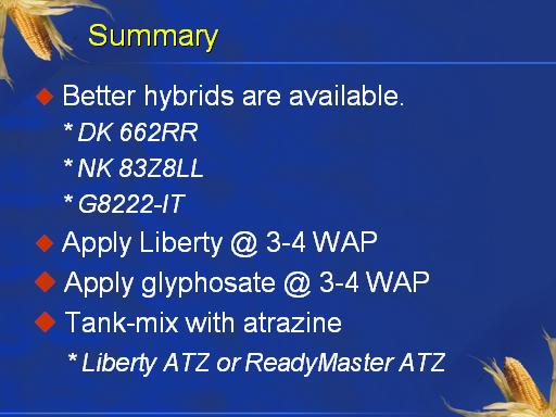 Summary<BR> Better hybrids are available.