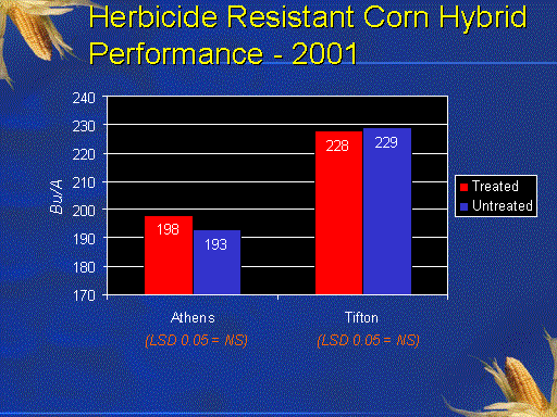 Herbicide Resistant Corn Hybrid Performance - 2001<BR>(LSD 0.05 = NS)<BR>(LSD 0.05 = NS)<BR>