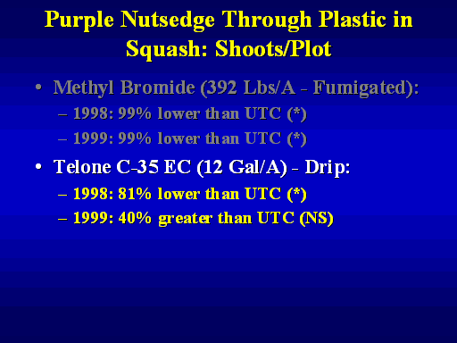Purple Nutsedge Through Plastic in Squash: Shoots/Plot</UL></P>