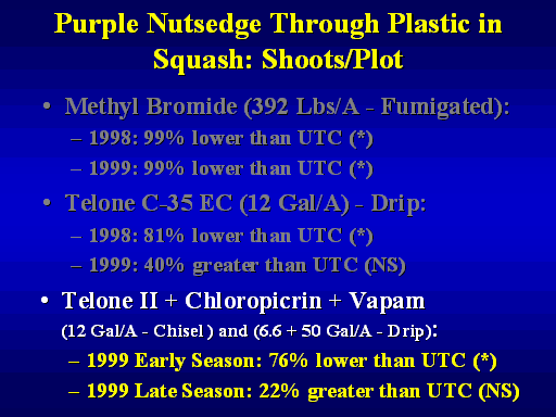 Purple Nutsedge Through Plastic in Squash: Shoots/Plot</UL></P>