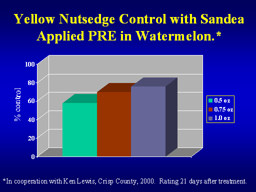 <H1>Yellow Nutsedge Control with Sandea Applied PRE in Watermelon.*</H1>