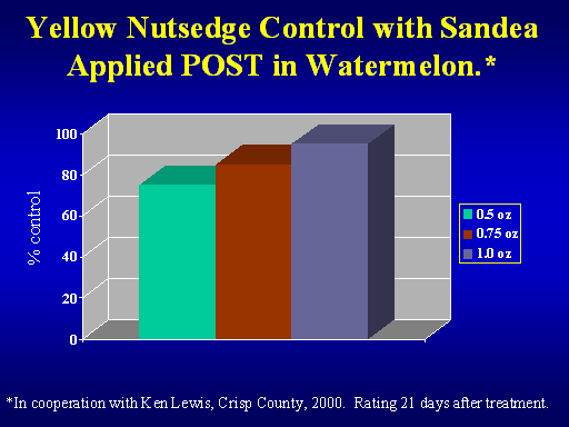 <H1>Yellow Nutsedge Control with Sandea Applied POST in Watermelon.*</H1>