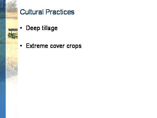Cultural Practices<BR>Deep tillage <BR> <BR>Extreme cover crops<BR>