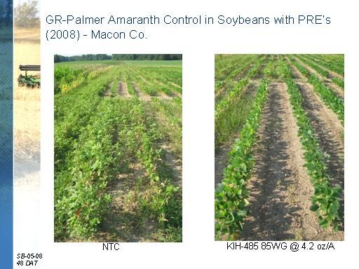 GR-Palmer Amaranth Control in Soybeans with PRE’s (2008) - Macon Co.<BR>NTC<BR>KIH-485 85WG @ 4.2 oz/A<BR>SB-05-08 <BR>48 DAT<BR>
