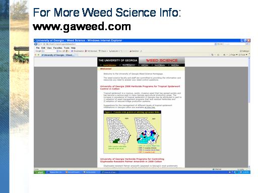 For More Weed Science Info: www.gaweed.com <BR>eprostko@uga.edu <BR> <BR>229-386-3328 (office) <BR> <BR>229-392-1034 (cell) <BR> <BR>