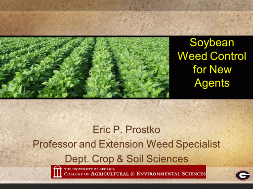 Soybean Weed Control for New Agents<BR>Eric P. Prostko <BR>Professor and Extension Weed Specialist <BR>Dept. Crop & Soil Sciences<BR>