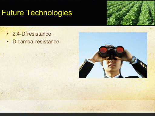 Future Technologies<BR>2,4-D resistance <BR>Dicamba resistance<BR>