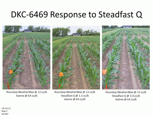 DKC-6469 Response to Steadfast Q<BR>CN-18-13 <BR>May 3 <BR>16 DAT<BR>Roundup WeatherMax @ 22 oz/A Aatrex @ 64 oz/A <BR>Roundup WeatherMax @ 22 oz/A <BR>Steadfast Q @ 1.5 oz/A Aatrex @ 64 oz/A <BR>Roundup WeatherMax @ 22 oz/A <BR>Steadfast Q @ 3.0 oz/A Aatrex @ 64 oz/A <BR>