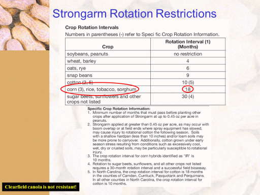 Strongarm Rotation Restrictions<BR>Clearfield canola is not resistant!<BR>