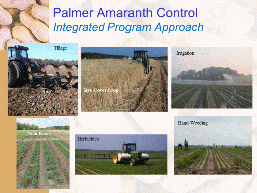 Palmer Amaranth Control Integrated Program Approach<BR>Tillage<BR>Rye Cover Crop<BR>Twin Rows<BR>Herbicides<BR>Hand-Weeding<BR>Irrigation<BR>