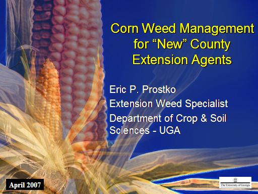 Corn Weed Management for 'New' County Extension Agents<BR>Eric P. Prostko <BR>Extension Weed Specialist <BR>Department of Crop & Soil Sciences<br>UGA<BR>April 2007<BR>