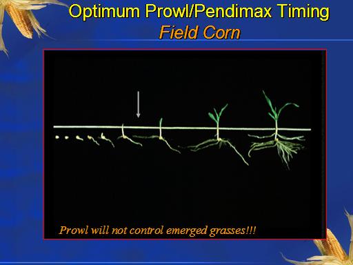 Optimum Prowl/Pendimax Timing  Field Corn<BR>Prowl will not control emerged grasses!!!<BR>