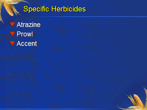 Specific Herbicides<BR> Atrazine <BR> Prowl <BR> Accent <BR>