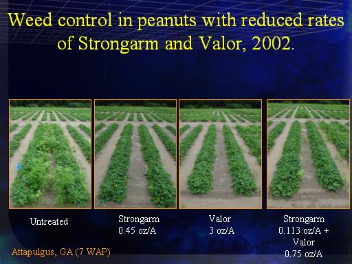 Weed control in peanuts with reduced rates of Strongarm and Valor, 2002.<BR>Untreated<BR>Strongarm
