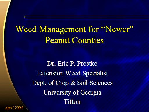 Weed Management for “Newer” Peanut Counties<BR>Dr. Eric P. Prostko