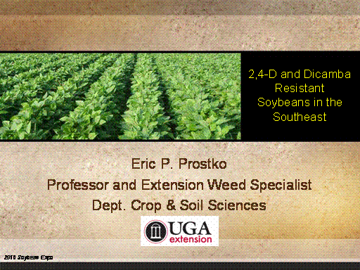 2,4-D and Dicamba Resistant Soybeans in the Southeast<BR>Eric P. Prostko <BR>Professor and Extension Weed Specialist <BR>Dept. Crop & Soil Sciences<BR>2016 Soybean Expo<BR>