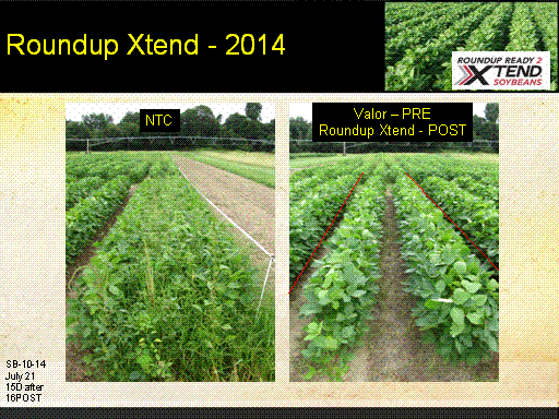 Roundup Xtend - 2014<BR>SB-10-14 <BR>July 21 <BR>D after  <BR>POST<BR>NTC<BR>Valor – PRE <BR>Roundup Xtend - POST<BR>