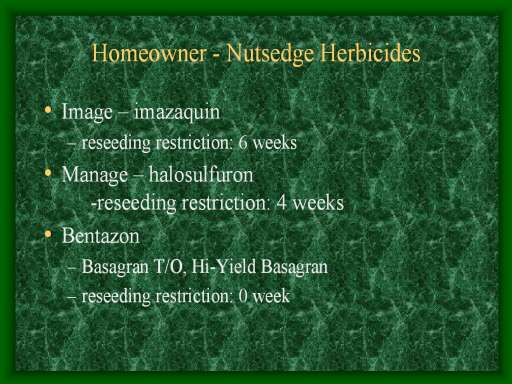 <LI><H2>Manage – halosulfuron 						-reseeding restriction: 4 weeks