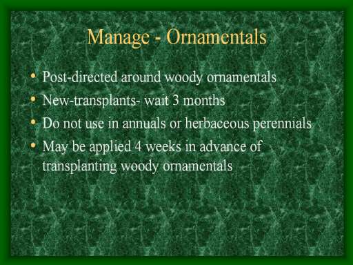 <LI><H2>May be applied 4 weeks in advance of transplanting woody ornamentals</H2>