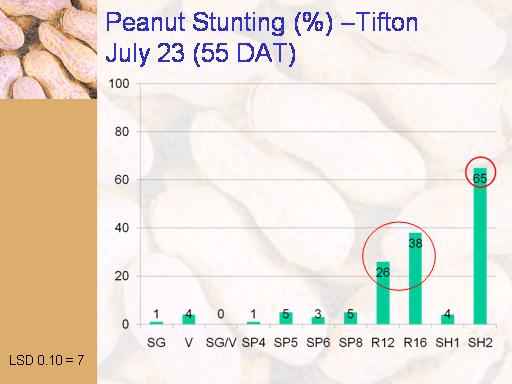 Peanut Stunting (%) –Tifton July 23 (55 DAT)<BR>LSD 0.10 = 7<BR>