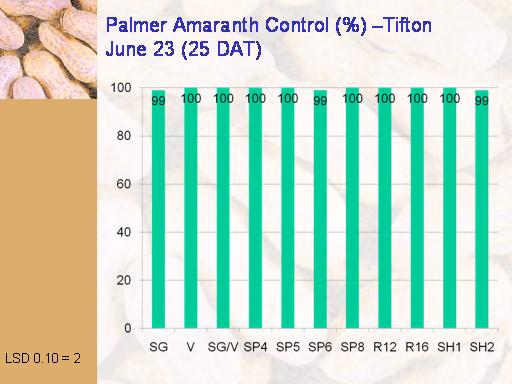 Palmer Amaranth Control (%) –Tifton June 23 (25 DAT)<BR>LSD 0.10 = 2<BR>