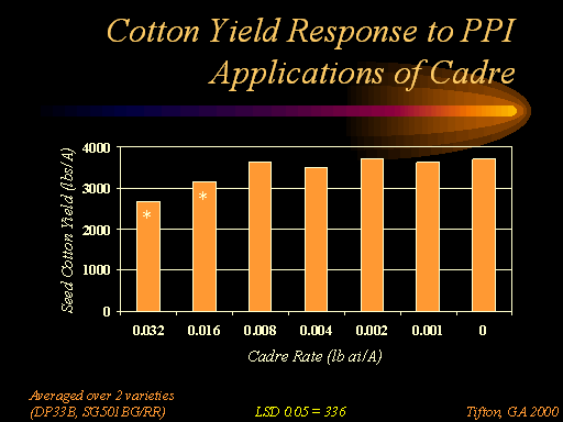 <H1>Cotton Yield Response to PPI Applications of Cadre</H1>