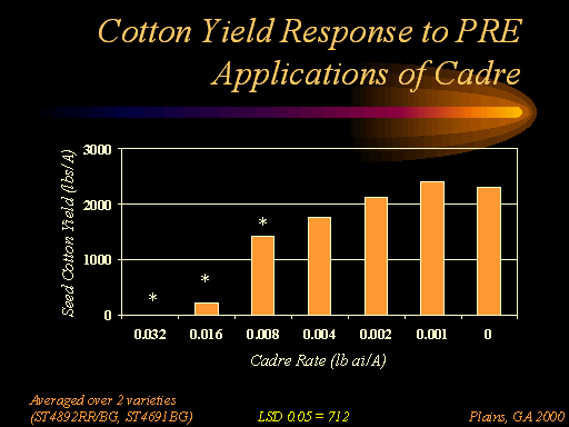 <H1>Cotton Yield Response to PRE Applications of Cadre</H1>