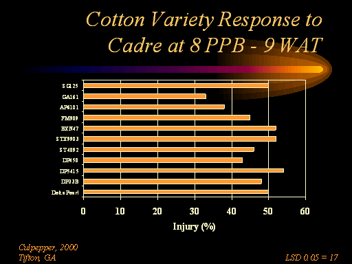 <H1>Cotton Variety Response to Cadre at 8 PPB - 9 WAT</H1>