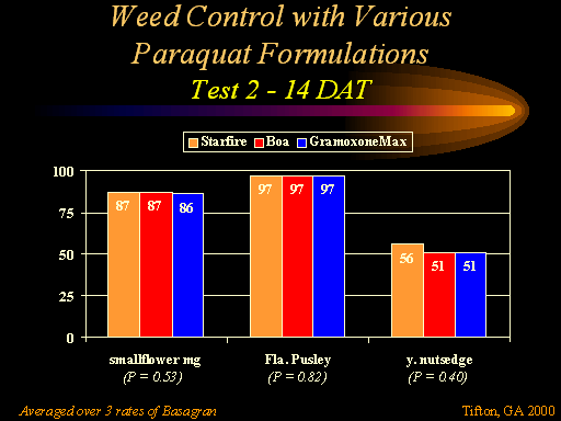 <H1>Weed Control with Various Paraquat FormulationsTest 2 - 14 DAT</H1>