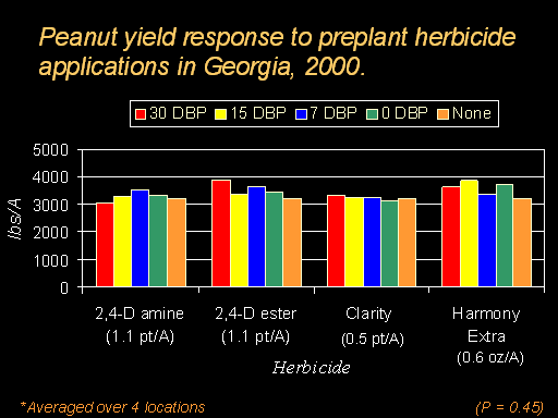 <H1>Peanut yield response to preplant herbicide applications in Georgia, 2000. </H1>