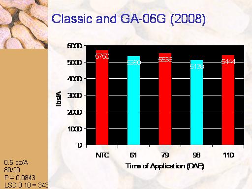 Classic and GA-06G (2008)<BR>0.5 oz/A <BR>80/20 <BR>P = 0.0843 <BR>LSD 0.10 = 343<BR>*<BR>