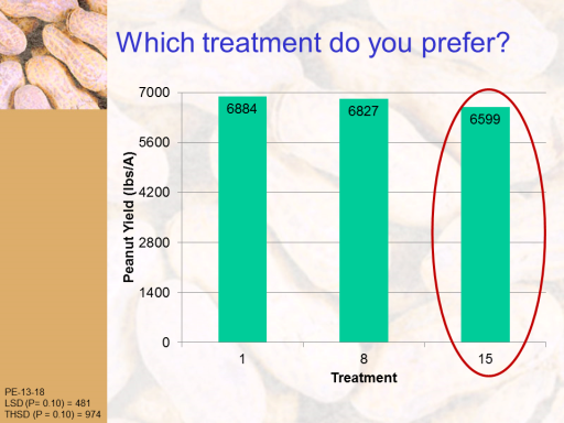 Which treatment do you prefer?<BR>PE-13-18 <BR>LSD (P= 0.10) = 481 <BR>THSD (P = 0.10) = 974<BR>
