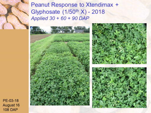 Peanut Response to Xtendimax + Glyphosate (1/50th X) - 2018 Applied 30 + 60 + 90 DAP<BR>PE-03-18 <BR>August 16 <BR>108 DAP<BR>