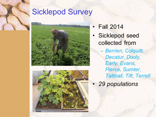 Sicklepod Survey<BR>Fall 2014 <BR>Sicklepod seed collected from <BR>Berrien, Colquitt, Decatur, Dooly, Early, Evans, Pierce, Sumter, Tattnall, Tift, Terrell <BR>29 populations <BR>