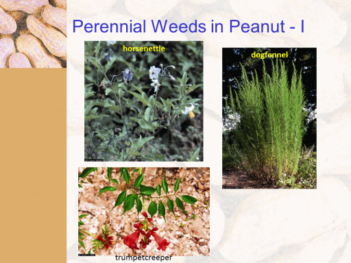 Perennial Weeds in Peanut - I<BR>horsenettle<BR>dogfennel<BR>trumpetcreeper<BR>