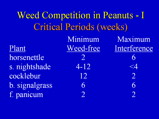 <H1>Weed Competition in Peanuts - ICritical Periods (weeks)</H1>