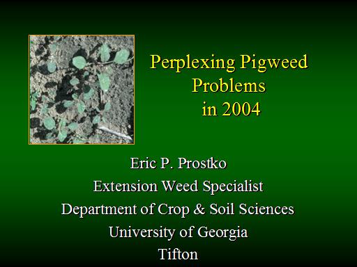 Perplexing Pigweed Problems  in 2004<BR>Eric P. Prostko <BR>Extension Weed Specialist <BR>Department of Crop & Soil Sciences <BR>University of Georgia <BR>Tifton<BR>