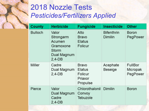 2018 Nozzle Tests Pesticides/Fertilizers Applied<BR>