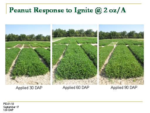 Peanut Response to Ignite @ 2 oz/A<BR>Applied 30 DAP<BR>Applied 60 DAP<BR>Applied 90 DAP<BR>PE-01-10 <BR>September 17 <BR>129 DAP<BR>