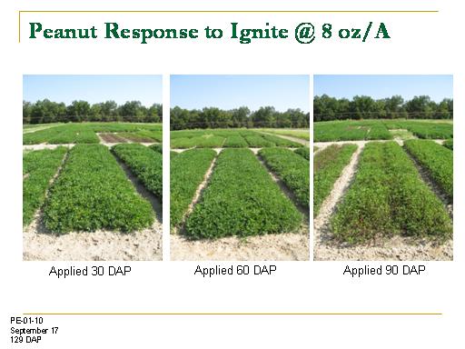 Peanut Response to Ignite @ 8 oz/A<BR>Applied 30 DAP<BR>Applied 60 DAP<BR>Applied 90 DAP<BR>PE-01-10 <BR>September 17 <BR>129 DAP<BR>