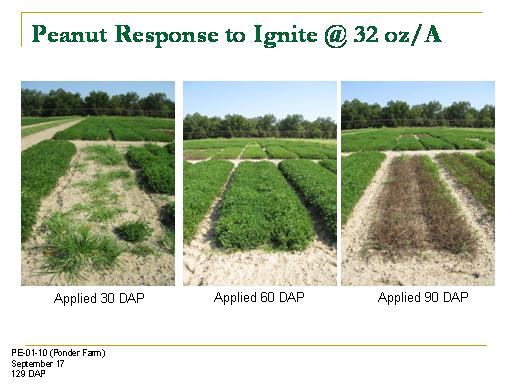 Peanut Response to Ignite @ 32 oz/A<BR>Applied 30 DAP<BR>Applied 60 DAP<BR>Applied 90 DAP<BR>PE-01-10 (Ponder Farm) <BR>September 17 <BR>129 DAP<BR>