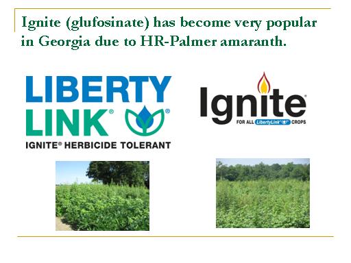 Ignite (glufosinate) has become very popular in Georgia due to HR-Palmer amaranth.<BR>