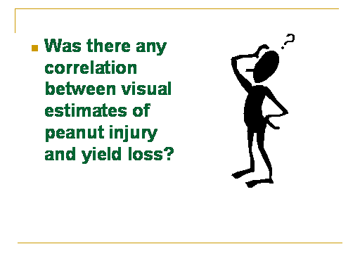 Was there any correlation between visual estimates of peanut injury and yield loss?<BR>