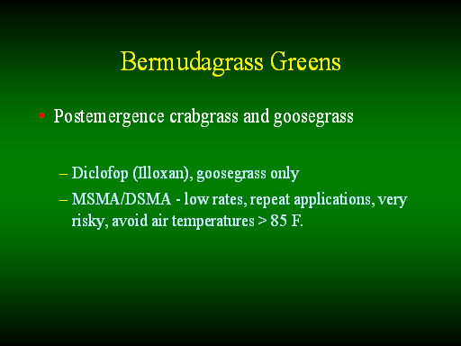 <LI>MSMA/DSMA - low rates, repeat applications, very risky, avoid air temperatures > 85 F.</UL></UL></P>