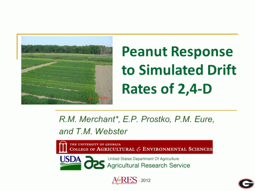R.M. Merchant*, E.P. Prostko, P.M. Eure, <BR>and T.M. Webster <BR>Peanut Response to Simulated Drift Rates of 2,4-D<BR>