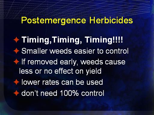 Postemergence Herbicides<BR> Timing,Timing, Timing!!!!
