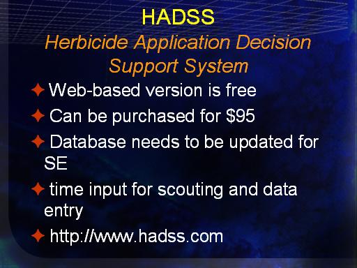 HADSSHerbicide Application Decision Support System<BR> Web-based version is free